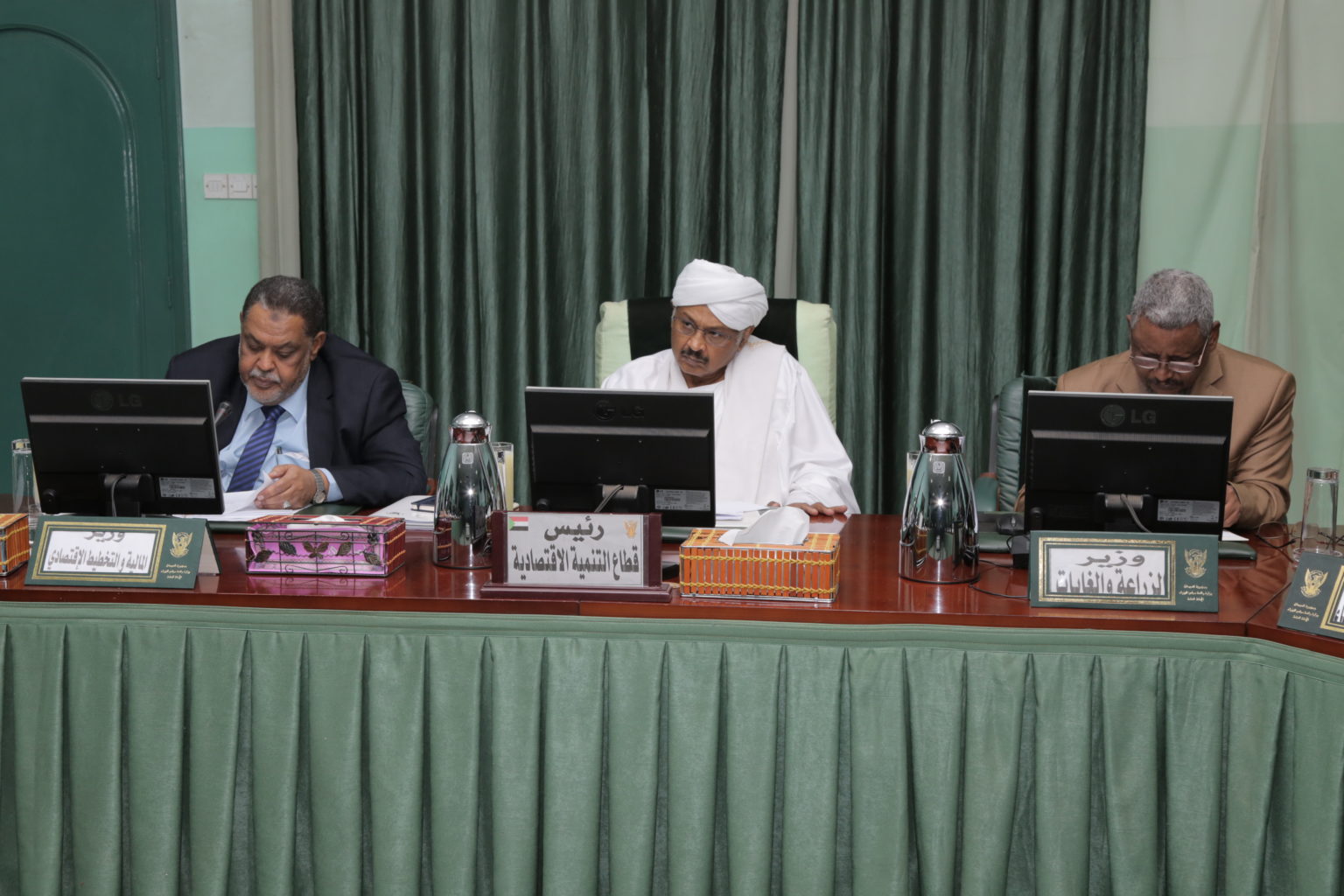 وفي الوقت الذي أبدى فيه وزير المالية محمد عثمان الركابي، استعداده للتقدم باستقالته من منصبه – حال كان ذلك حلاً للأوضاع الاقتصادية الراهنة – حسب قوله، أعلن المجتمعون انتداب أعضاء منهم للاجتماع بالرئيس السوداني، وبحضور نائب رئيس المؤتمر الوطني إبراهيم محمود.