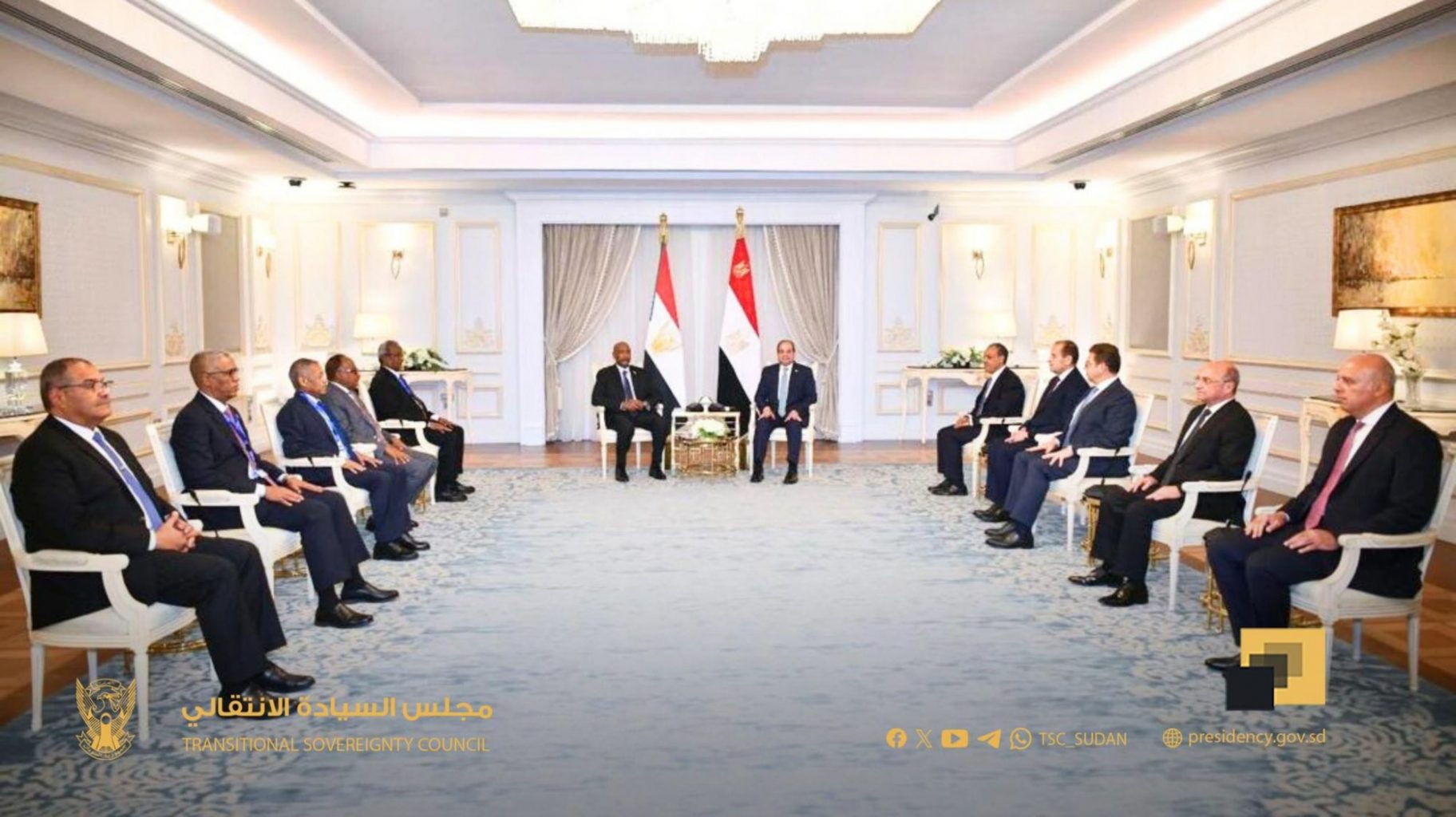 وصرّح السفير محمد الشناوى، المتحدث الرسمي باسم رئاسة الجمهورية، بأن اللقاء شهد مناقشة مستجدات الأوضاع الميدانية في السودان، إلى جانب الجهود الإقليمية والدولية المبذولة لاستعادة السلام والاستقرار هناك.
