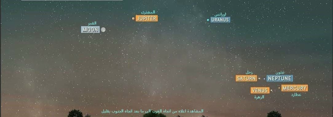 وأشار إلى أن هذه الكواكب ستكون على الجانب نفسه من الشمس، مما يتيح إمكانية رصدها بعد الغروب باتجاه الأفق الغربي إلى الجنوب الغربي.