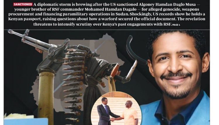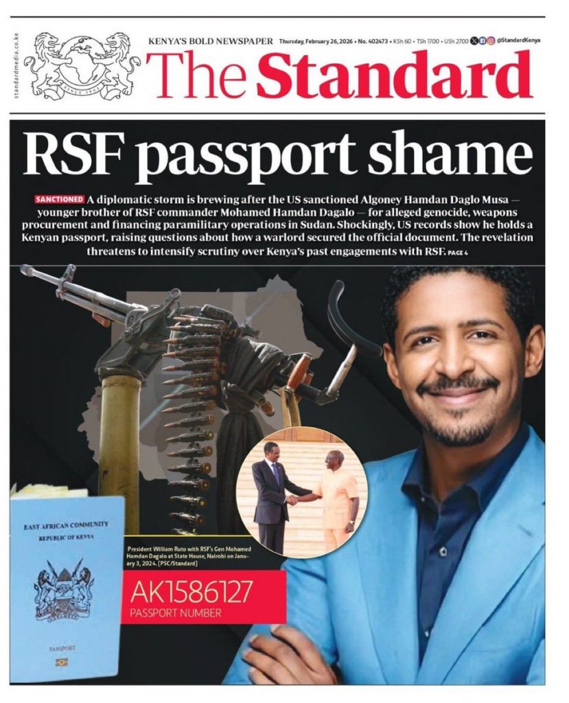طالب المرشح الرئاسي الكيني ورئيس القضاء السابق، ديفيد ماراغا، حكومة بلاده بإلغاء جواز سفر مُنح للقوني حمدان دقلو، شقيق قائد قوات الدعم السريع في السودان، واصفاً الخطوة بأنها تهدد سيادة كينيا وحيادها الإقليمي.